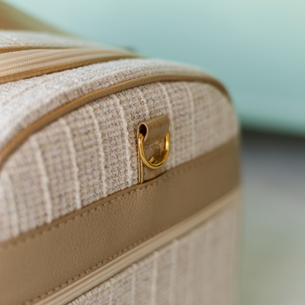 A Elegância e a Praticidade de uma Mala Maternidade Grande em tweed com detalhe ouro.