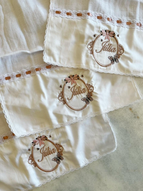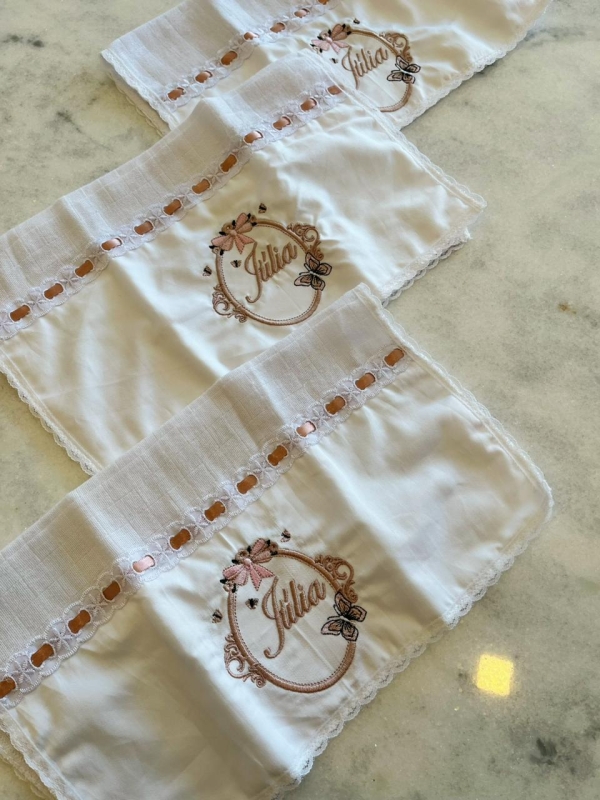 Confeccionados com tecido fralda premium, o mesmo utilizado em nossa toalha de banho e fralda de ombro, os paninhos de boca oferecem toque extremamente macio, alta absorção e suavidade, respeitando a pele sensível do bebê e garantindo conforto em cada uso.